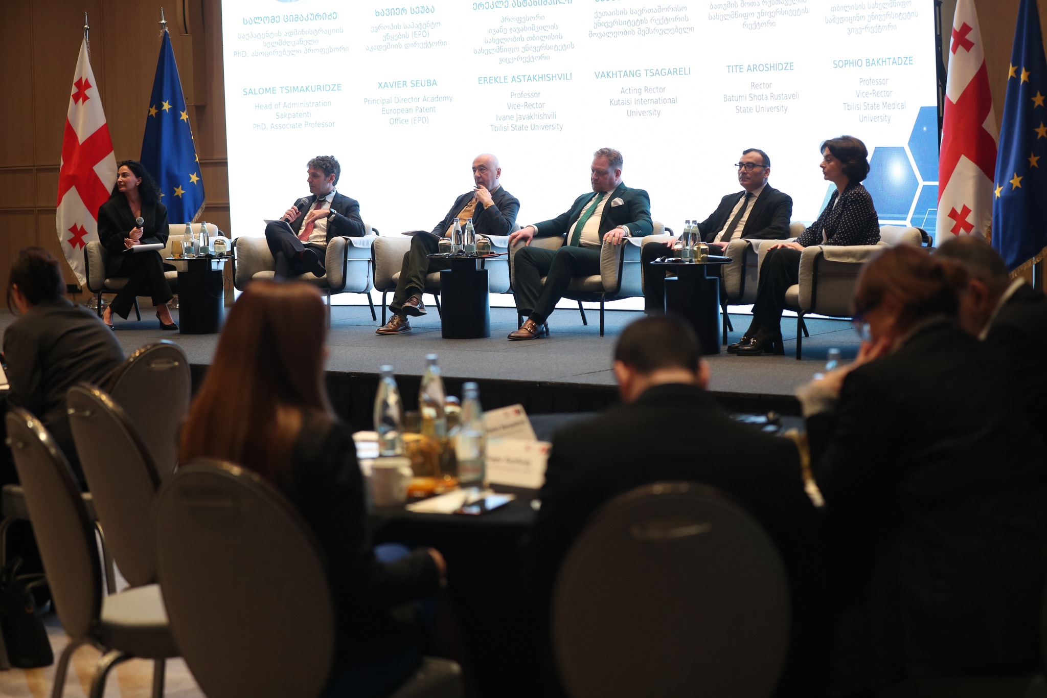 პირველი პანელური დისკუსია, რომელსაც მოდერაციას უწევდა საქპატენტის ადმინისტრაციული დეპარტამენტის უფროსი სალომე ციმაკურიძე, დაეთმო უნივერსიტეტების სტრატეგიულ როლს კვლევის, ინოვაციისა და საერთაშორისო თანამშრომლობის განვითარებაში. დისკუსიის ფარგლებში განიხილეს უნივერსიტეტების, როგორც ინოვაციისა და ტექნოლოგიური განვითარების მამოძრავებელი ინსტიტუტების როლი. ყურადღება გამახვილდა ინტელექტუალური საკუთრების განათლებისა და პროფესიული გადამზადების მნიშვნელობაზე, როგორც ტექნოლოგიების ტრანსფერის ხელშემწყობ მექანიზმზე.